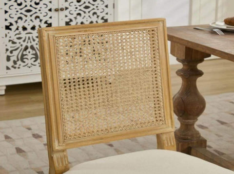 Comfortable and durable linen fabric upholstery with a stylish rattan backrest.
