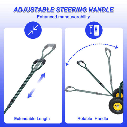 Extendable Steering Handle: Our garden cars with ease thanks to the flexible steering and adjustable handle. The front wheels provide smooth control, making it effortless to navigate across any terrain.