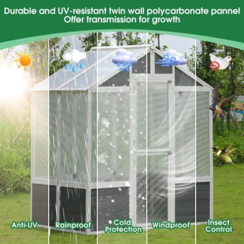 Greenhouse, Wooden Greenhouse Polycarbonate Garden Shed fors, 76''x48''x86'' Walk-in Outdoor 32329616