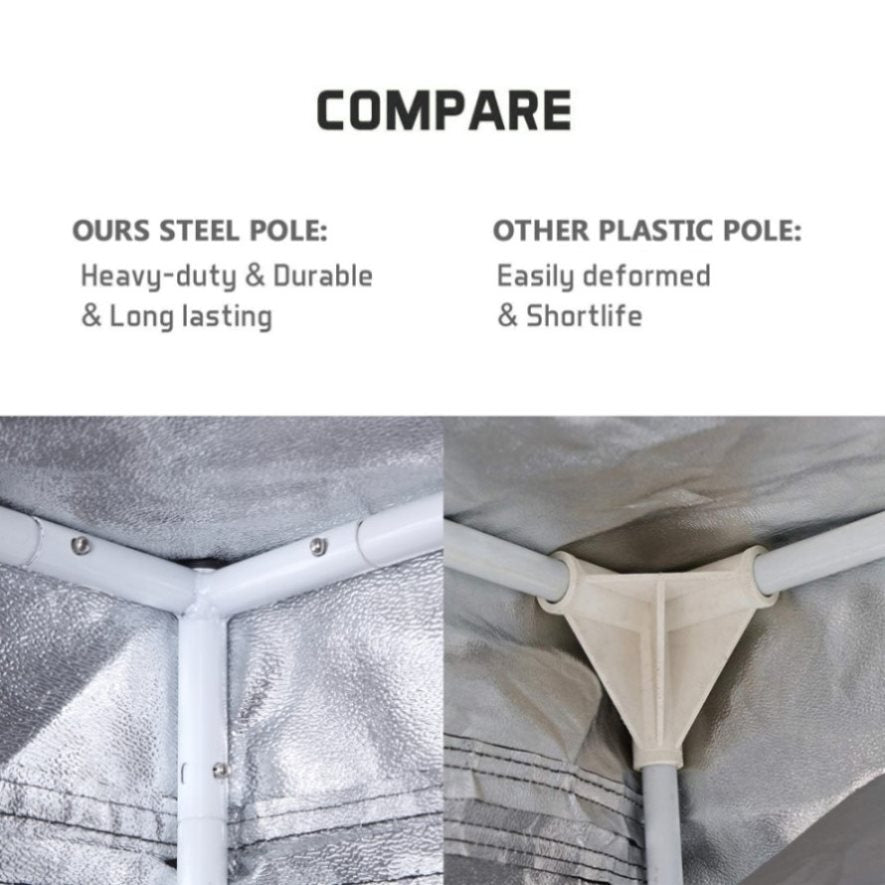 1. Material: Outside: Oxford Cloth, Inside: PEVA High Reflective Silver Aluminum Foil, Frame: Iron