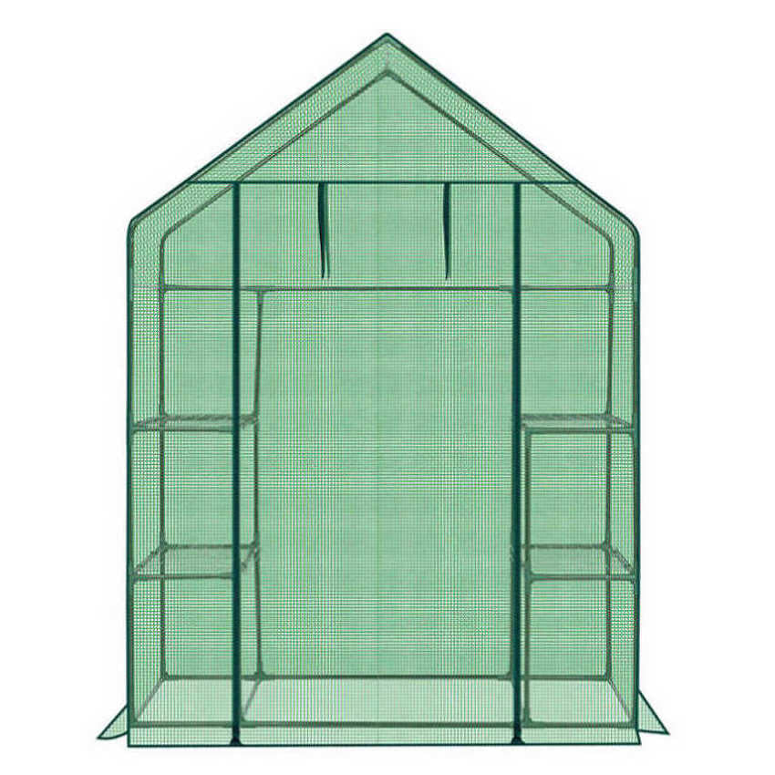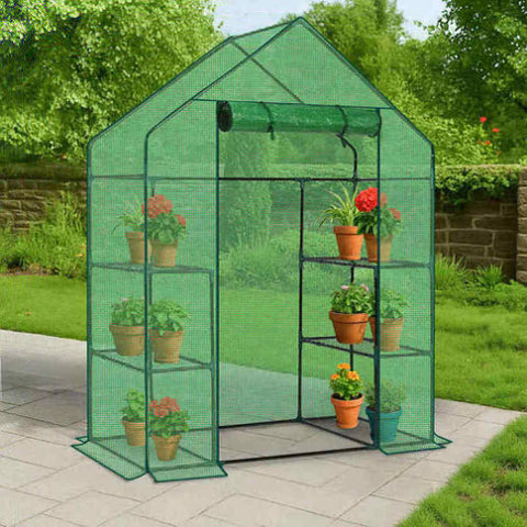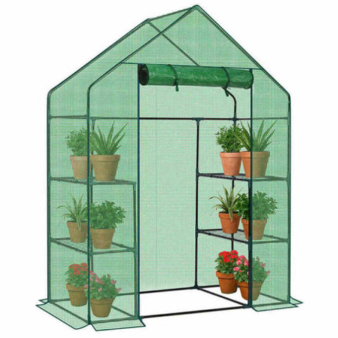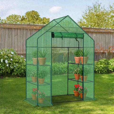 Create the perfect environment for year-round plant care with this Mini Walk-in Greenhouse featuring a durable PE cover and a spacious 4-shelf design. Ideal for indoor or outdoor use, this greenhouse provides ample space to grow a wide variety of plants, herbs, vegetables, and flowers. Constructed with a rust-resistant powder-coated steel frame and a waterproof PE cover, it offers reliable protection from weather while maintaining excellent ventilation. The zippered roll-up door allows easy access and adjustable airflow, ensuring optimal growing conditions in any season. Simple to assemble and easy to relocate, this walk-in greenhouse is perfect for patios, backyards, or decks.
