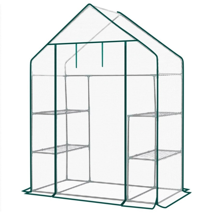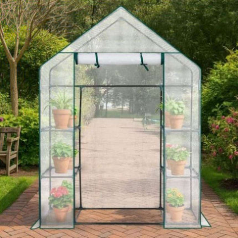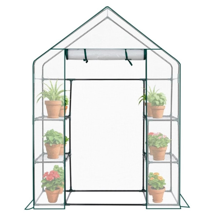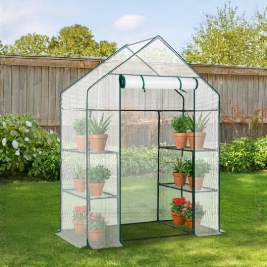 Create the perfect environment for year-round plant care with this Mini Walk-in Greenhouse featuring a durable PE cover and a spacious 4-shelf design. Ideal for indoor or outdoor use, this greenhouse provides ample space to grow a wide variety of plants, herbs, vegetables, and flowers. Constructed with a rust-resistant powder-coated steel frame and a waterproof PE cover, it offers reliable protection from weather while maintaining excellent ventilation. The zippered roll-up door allows easy access and adjustable airflow, ensuring optimal growing conditions in any season. Simple to assemble and easy to relocate, this walk-in greenhouse is perfect for patios, backyards, or decks.