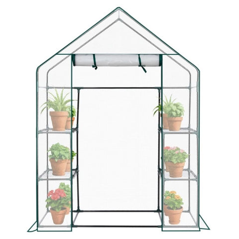 Mini Walk-in Greenhouse with PE Cover, 4-Shelf Indoor Outdoor Plant Gardening Green House for Garden 57670893