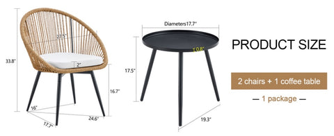 Complete Set: The set includes 1 coffee table and 2 swivel chairs, with dimensions of diameter 17.7 inches and height 17.5 inches, meeting your outdoor leisure needs.