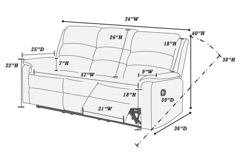 Recliner Sofa - 74"W x 36"L x 40"H Listing Include : 1pc Motion Recliner Sofa Only. Recliner Chair - Not Included. Product Features:-