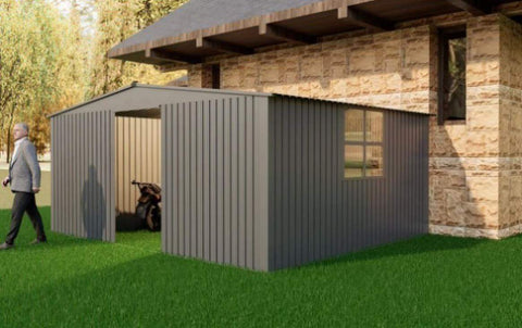 The detailed instructions make it easy to complete the installation step by step. Unlike typical sheds with plastic vents, this shed comes with two integrated punched vents which will not deteriorate against sunlight. This storage shed has two functions: tools are stored in the shed and firewood is stored on the side. Apex roof sheds have the apex gable ends and are the most popular and economical type of metal shed design.