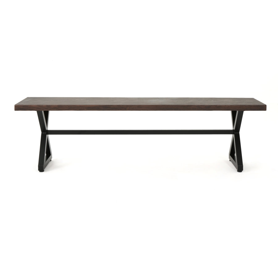Outdoor Aluminum Dining Bench with Steel Frame, Brown / Black 61625.00BBRNMP1