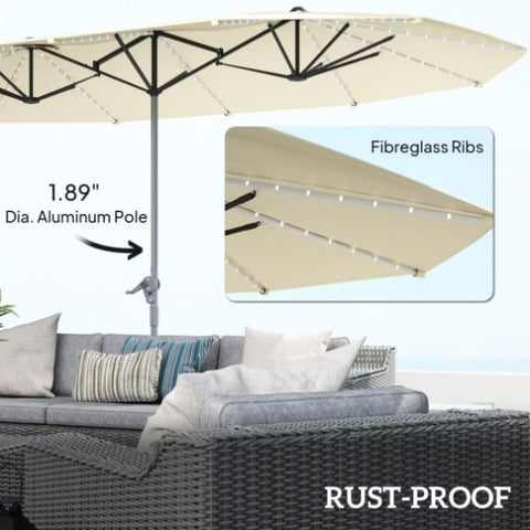 - - Aluminum pole and glass fiber ribs ensure rust-proof durability