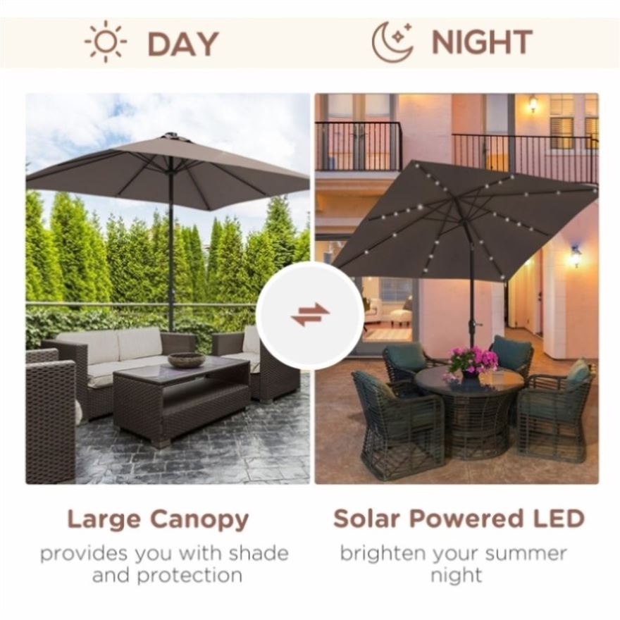 - - A patio umbrella with solar-powered LED lights to keep your space illuminated for up to 4 hours at night