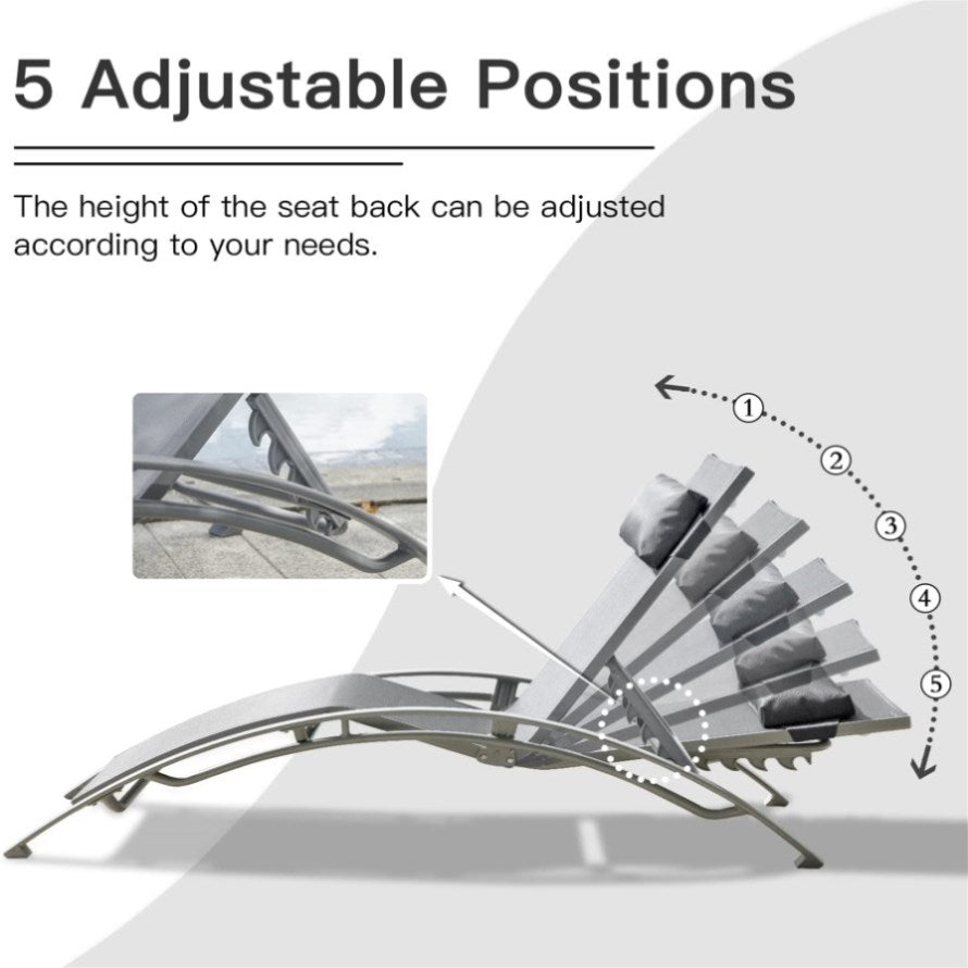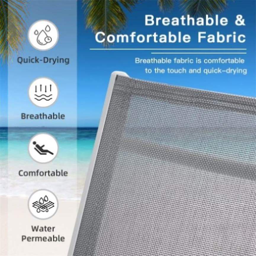 High-quality Textilene Fabric- This chaise lounge set is made of high-quality Textilene fabric, which is quick-drying, durable, lightweight, and resistant to the elements, let your skin feel comfort and breathable.