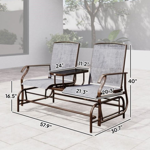 - 2 person glider bench with an elevated table in the center