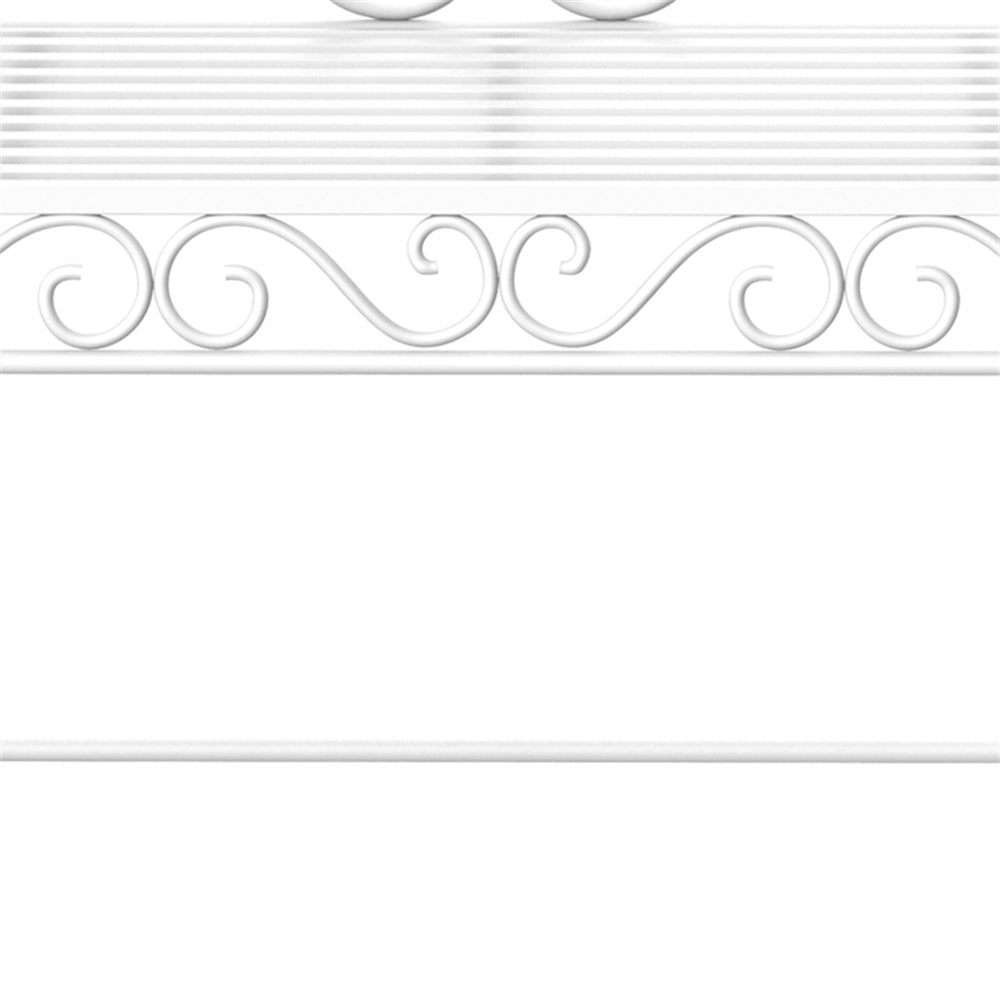 - - Swirling white metal flourishes make this outdoor-ready bench an instant garden centerpiece