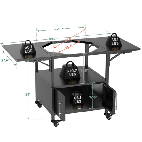 DOUBLE-FOLDING PANEL DESIGN — Our big green egg table has two high-quality foldable panels for easy storage. The panel material is made of high-quality materials, so there is no need to worry about the load-bearing issue. When unfolded, you can place various grilling ingredients, tools, etc., to ensure that everything you need is organized and ready to use