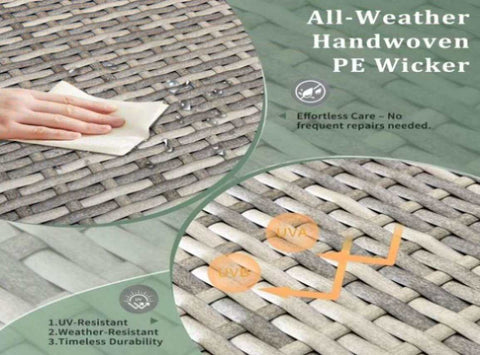 3. All-Weather PE Rattan: The exquisite handwoven PE rattan construction is designed to withstand various weather conditions, ensuring long-lasting durability.