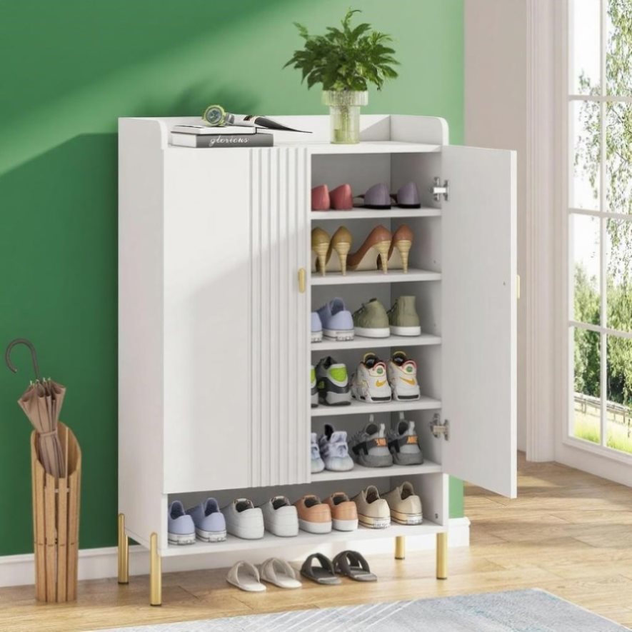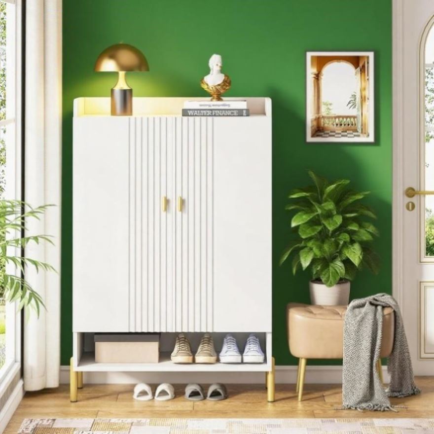 Elegant & Universal Aesthetics: The classic white and gold design of this shoe organizer for entryway effortlessly complements any home decor. Its sleek and stylish appearance elevates the visual appeal of your living space, making it a fashionable and functional piece of furniture.