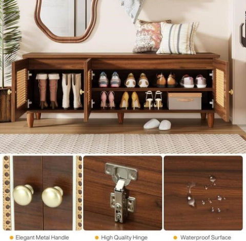 Breathable Rattan Doors: PVC rattan doors improve airflow to reduce odors and moisture, keeping shoes fresh and dry—ideal for daily family use or shared entryways