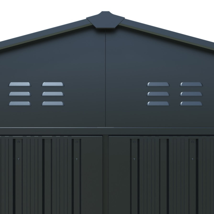 Ventilation & Lighting Effect: 4 essential vents in the wall provide better light and ventilation, and a tilted roof, and a lockable door help to prevent odors and reduce moisture. the sloping roof is specially designed to prevent rainwater from gathering and rusting