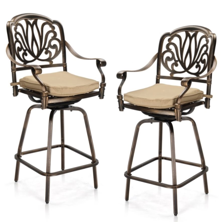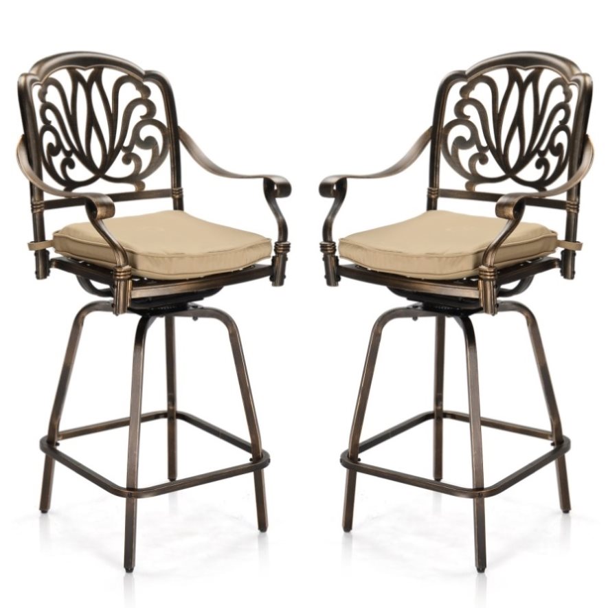 Outdoor Swivel Bar Stools Set of 2, Cast Aluminum Patio Bar Height, All-Weather Bar Dining 52885798