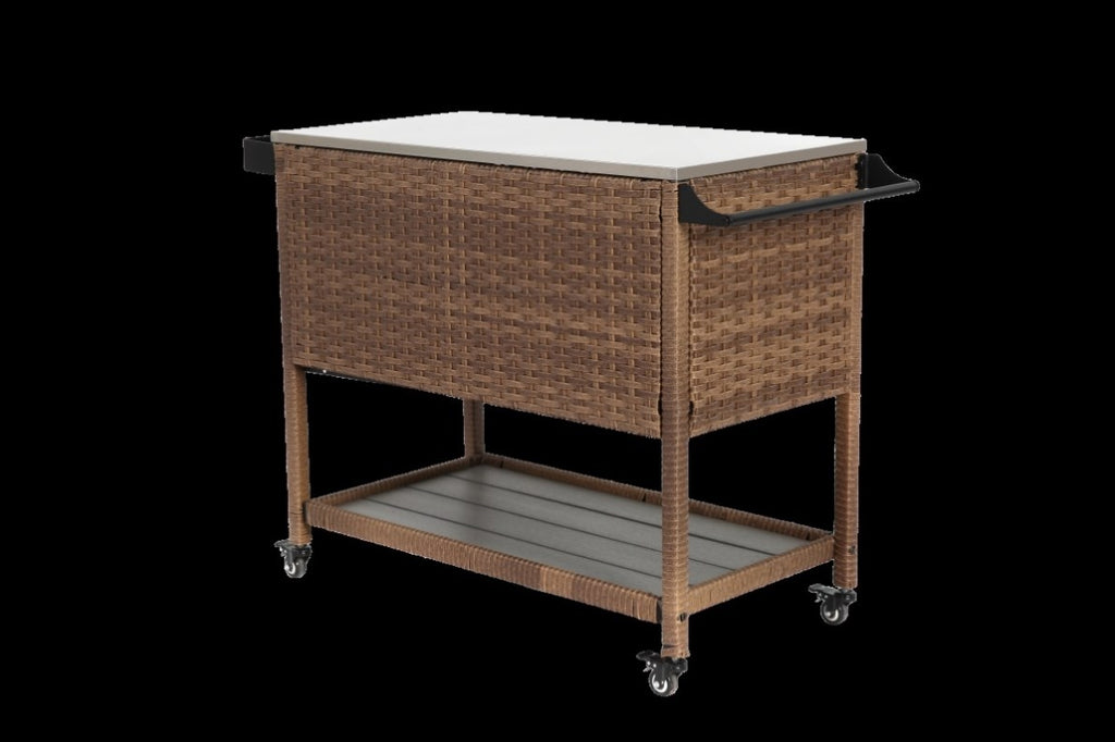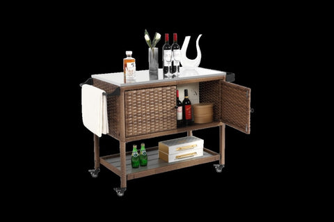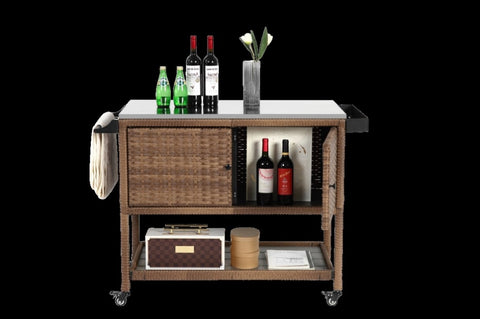 Large bar cart,Outdoor Kitchen Wicker Island Rolling Cart & Storage Cabinet