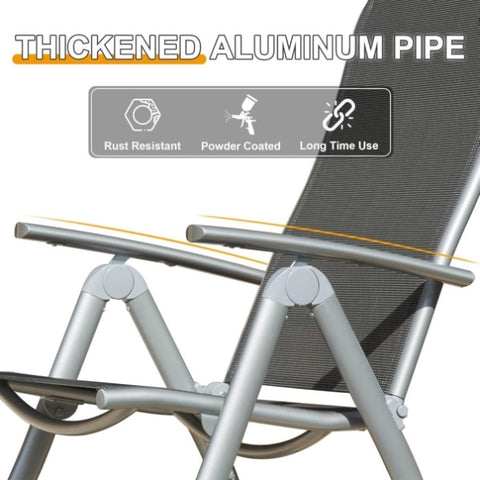 Patio Folding Chairs Set of 2, Aluminium Frame Outdoor Reclining Patio Chairs for Garden Camping W1859P210825