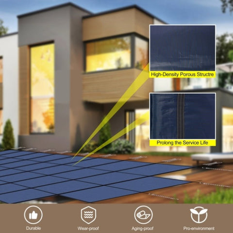Tight Mesh Design for Superior Protection: Featuring a tight mesh construction, our pool cover effectively drains water while keeping out leaves, snow, and other debris. The cover blocks sunlight, preventing algae growth and ensuring a clean, clear pool when the warmer months return.