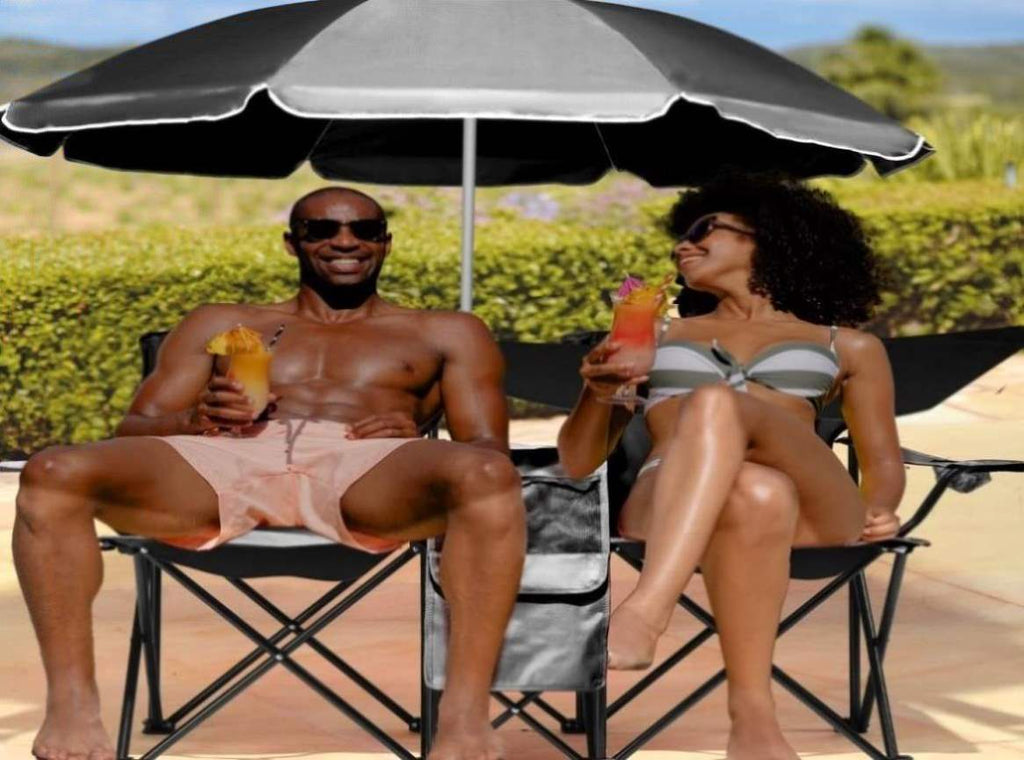 Portable Outdoor 2-Seat Folding Chair with Removable Sun Umbrella Black 57458005