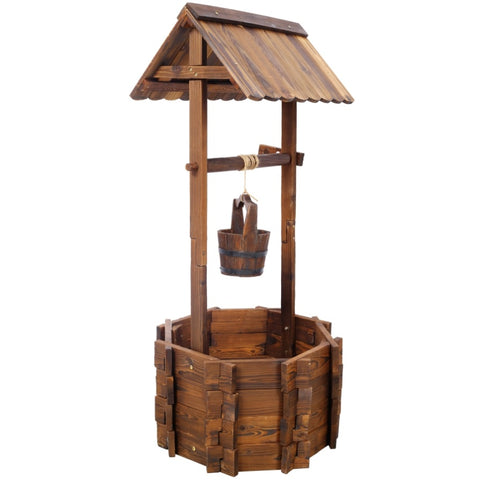 Durable Construction: Crafted from solid fir wood, this well is built to withstand the elements while maintaining its rustic appeal with a weathered brown finish.