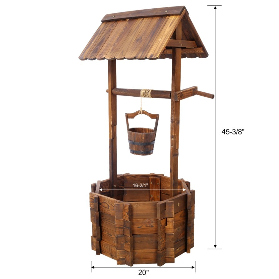 Rustic Wooden Wishing Well Planter Outdoor Home Dcor for Patio, Garden, Yard w/Hanging Bucket ,20in W465P215368