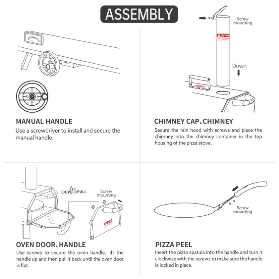 Temperature gauge: Equipped with a temperature gauge, the pizza oven allows you to monitor the internal temperature, ensuring the ideal cooking temperature for crispy crust and melted cheese.