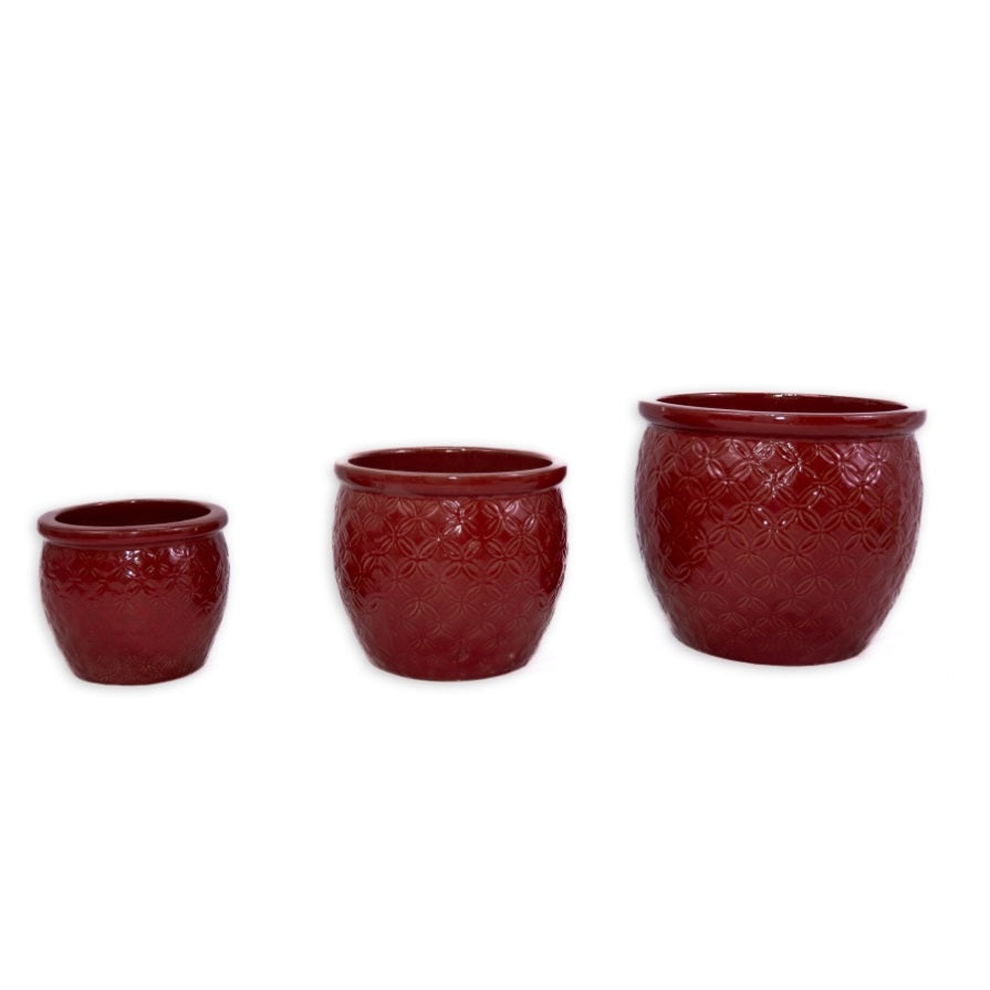 Set of 3 Ceramic Flowerpot, Modern Planter for Patio, Garden, Windowsill - Red W3273P321489