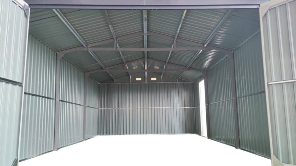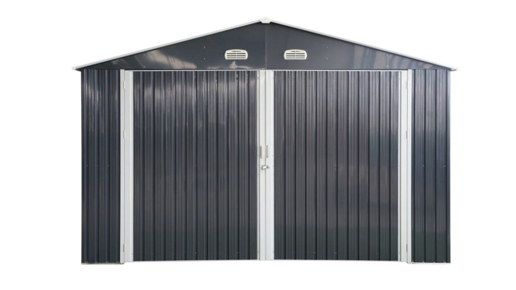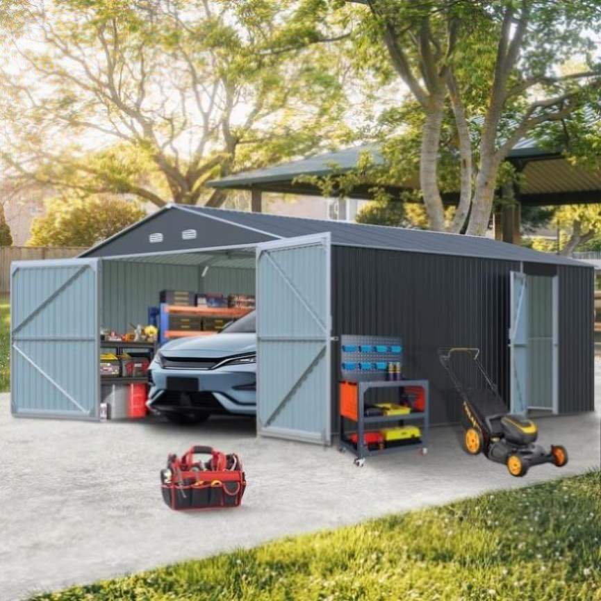Sturdy and Durable Construction: Built with a steel tube support frame and reinforced galvanized steel, this metal garage shed is engineered for durability. The steel pipes feature a 1mm powder coating, providing excellent resistance against weather elements. Reinforcement ribs and inner anchors ensure a robust structure that can be securely fixed to the ground.