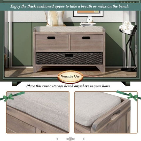 Storage Bench with Removable Basket and 2 Drawers, Fully Assembled Shoe Bench with Removable Cushion 20282827