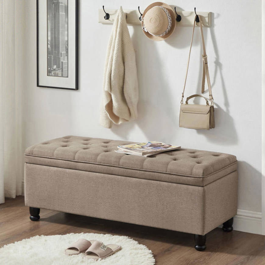 Function: The bench serves as both a stylish seat and a comfortable resting place, while also providing storage space for such as toys, shoes, blankets, books and other sundries.
