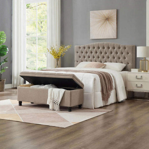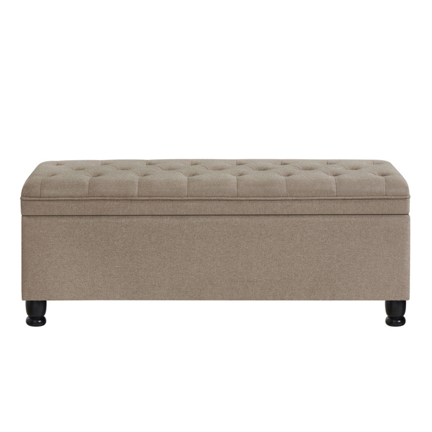 Upholstered tufted button storage bench ,Linen fabric entry bench with spindle wooden legs, Bed W2186P151306