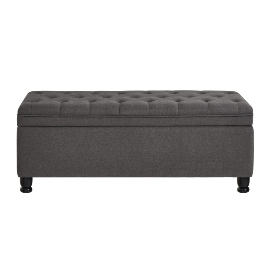 Upholstered tufted button storage bench ,Linen fabric entry bench with spindle wooden legs, Bed W2186P151307