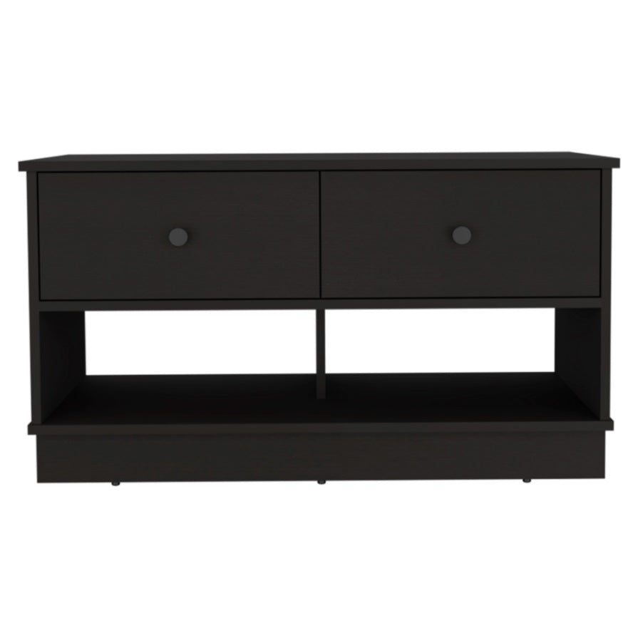 Uranus Storage Bench, Two Drawers, Two Open Shelves, Black B097133194