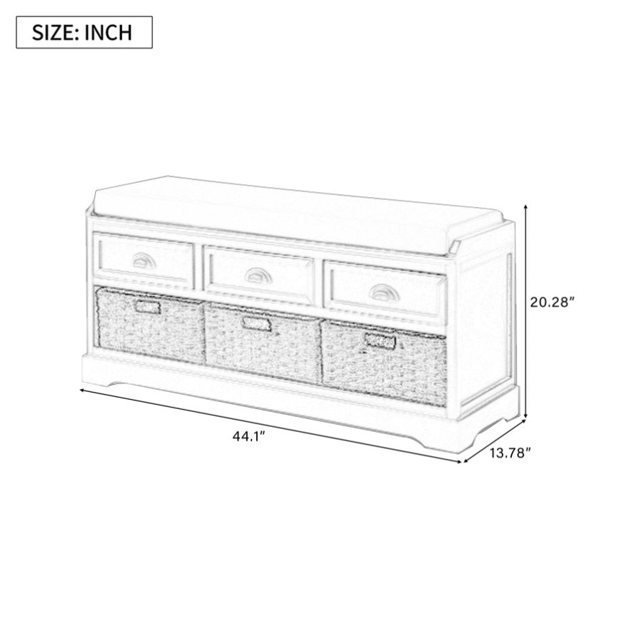 U_STYLE Homes Collection Wood Storage Bench with 3 Drawers and 3 Baskets WF323641AAK