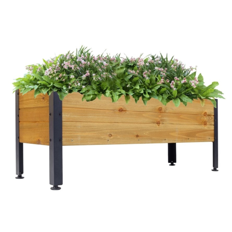 Natural Wood Construction: Crafted from premium fir wood, this planter box is highly resistant to rain and corrosion, offering an eco-friendly option for your gardening needs. It is supported by robust metal legs for enhanced strength and durability.