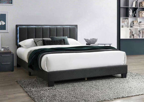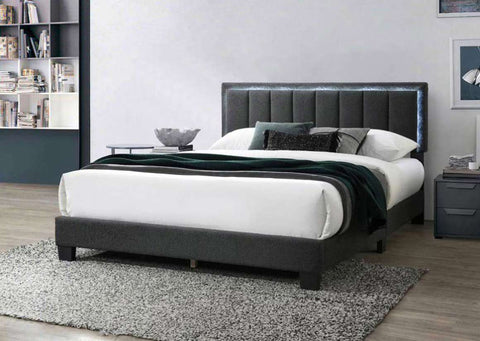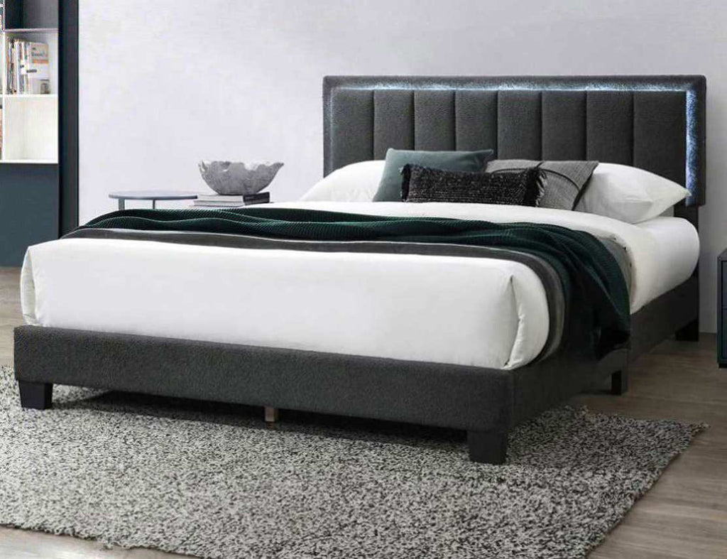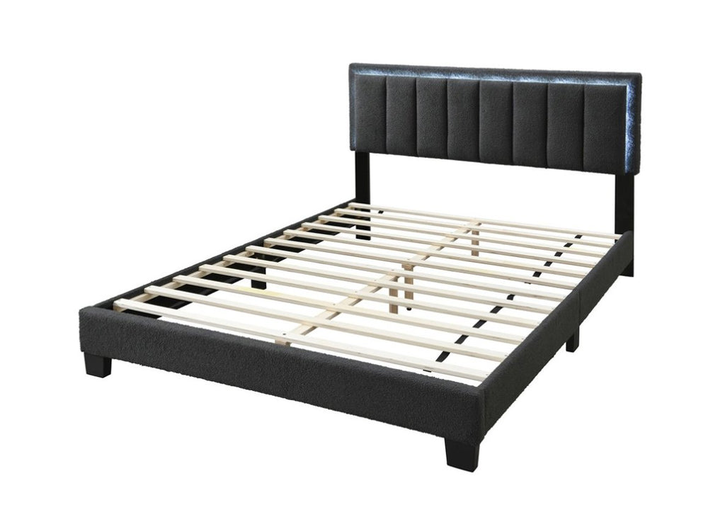 1pc Queen Size Bed Charcoal Wool Fabric Channel Tufting w LED Full Upholstered Bedframe Bedroom Bed B011P238968