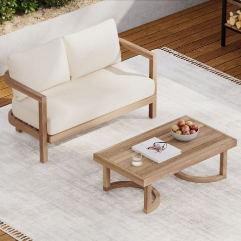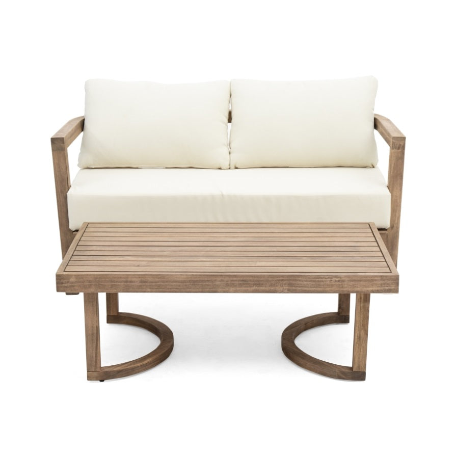 Modern Patio Acacia Wood Loveseat&Coffee Table
