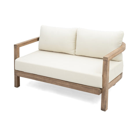 Enjoy the warm sunshine in luxurious loveseat that is sure to bring an extra boost of style to your space. Combining a gorgeous blend of mixed materials, our club chair set will be a flawless addition to any outdoor lounge area. This can be used as a standalone or can be used to accent your existing furniture, making this a dream for those who love to personalize their space. With solid acacia wood frames and plush outdoor cushions, patio set offer hours of conversation for you and your guests.