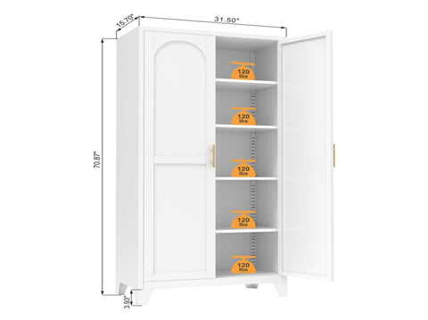 Spacious Storage Capacity With its generous 71" height, this cabinet offers plenty of storage space.The ample depth of the shelves further ensures that even sizable objects can be accommodated with ease, providing not just storage, but efficient and tidy organization for your everyday essentials and seasonal belongings alike.