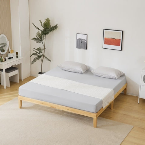 Basic bed frame painted pine wood original color King 202*192*30.5cm wooden bed single bed 18748847