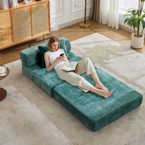 - 【Convertible Foldable Design】The fold out sofa bed has 2 forms of floor sofa and mattress, it can be easily converted between bed and sofa by folding the side armrests or backrest, which can largely save your space and you don't have to worry about not having a place to sleep when your friends or family members come to visit you, it can be a suitable choice for your living room sofa.