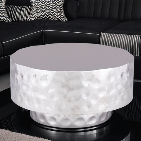 Elevate your living space with this striking coffee table, a masterful blend of modern artistry and timeless craftsmanship. Made from premium stainless steel, this table features a hand-hammered surface that exudes texture and character, making each piece unique. Its sleek, rounded form showcases a contemporary design, ideal for adding a touch of sophistication to any room. Available in luxurious copper, gold, or silver finishes, this table serves as both a functional centerpiece and a statement of style, effortlessly enhancing your decor with its refined elegance.