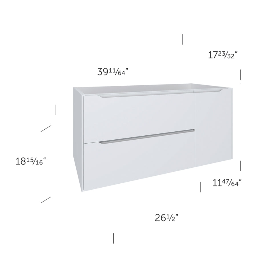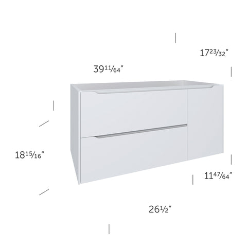 DAX Cenit Single Vanity Cabinet with 2 Drawers 1 Door 40 Inches Matt White B2702P226988