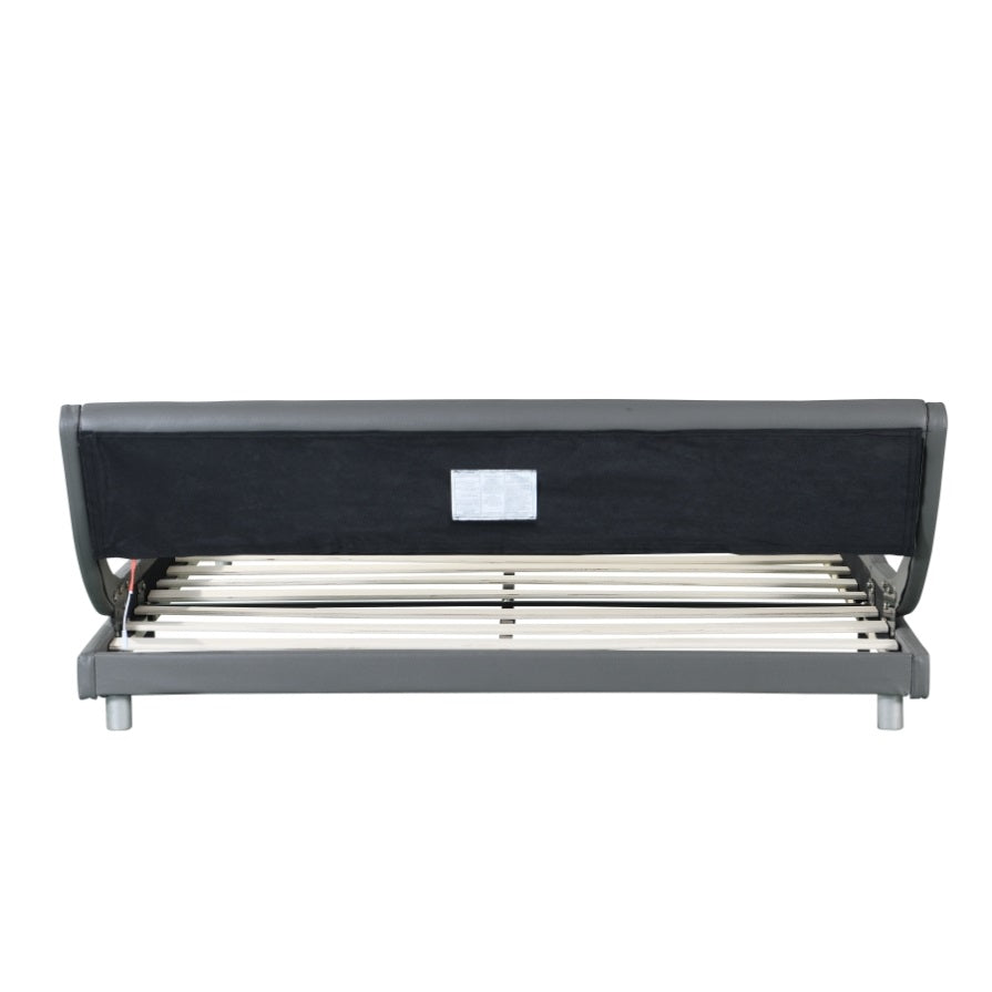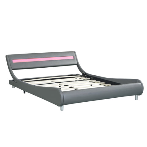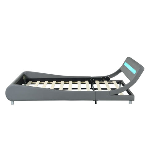 Faux Leather Upholstered Platform Bed Frame with led lighting , Curve Design, Wood Slat Support, No W2297140906