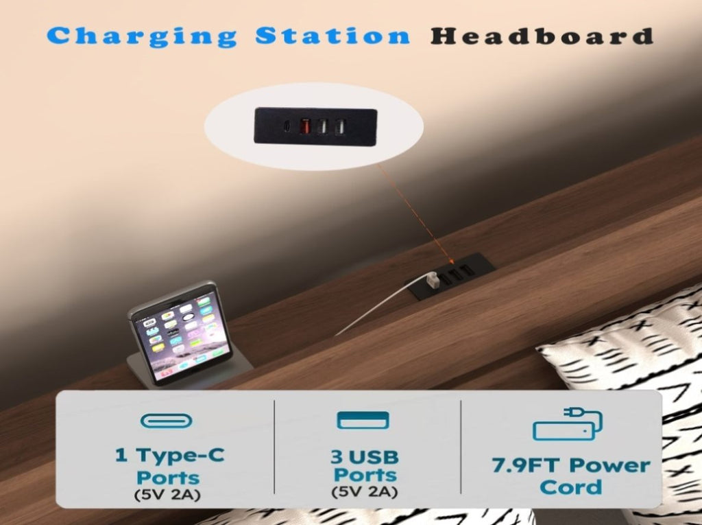 Floating Bed Frame Queen with Led Lights and Charging Station, Wood Queen Size Bed Frame with 65209522