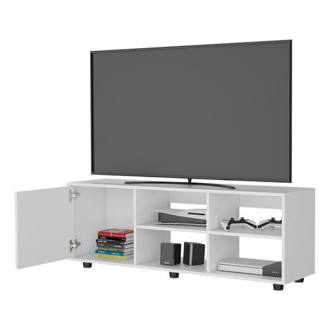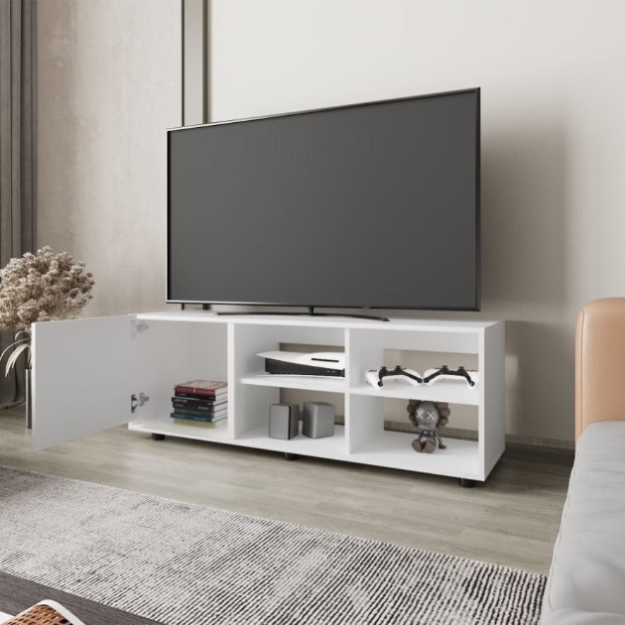Parker TV Stand with a Door and Open Storage, White