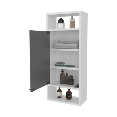 FM FURNITURE Pine Like Medicine Cabinet with Mirrored Door and Open Storage, White B128P301386